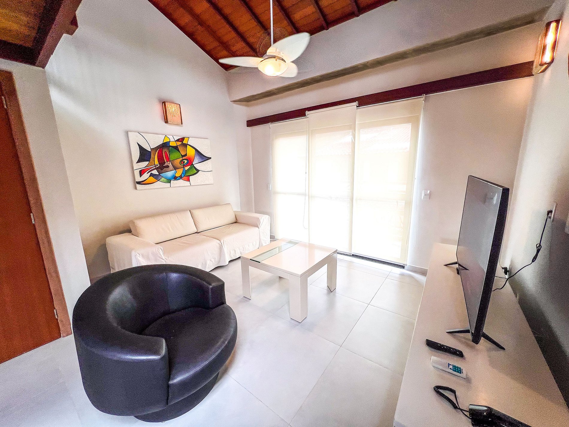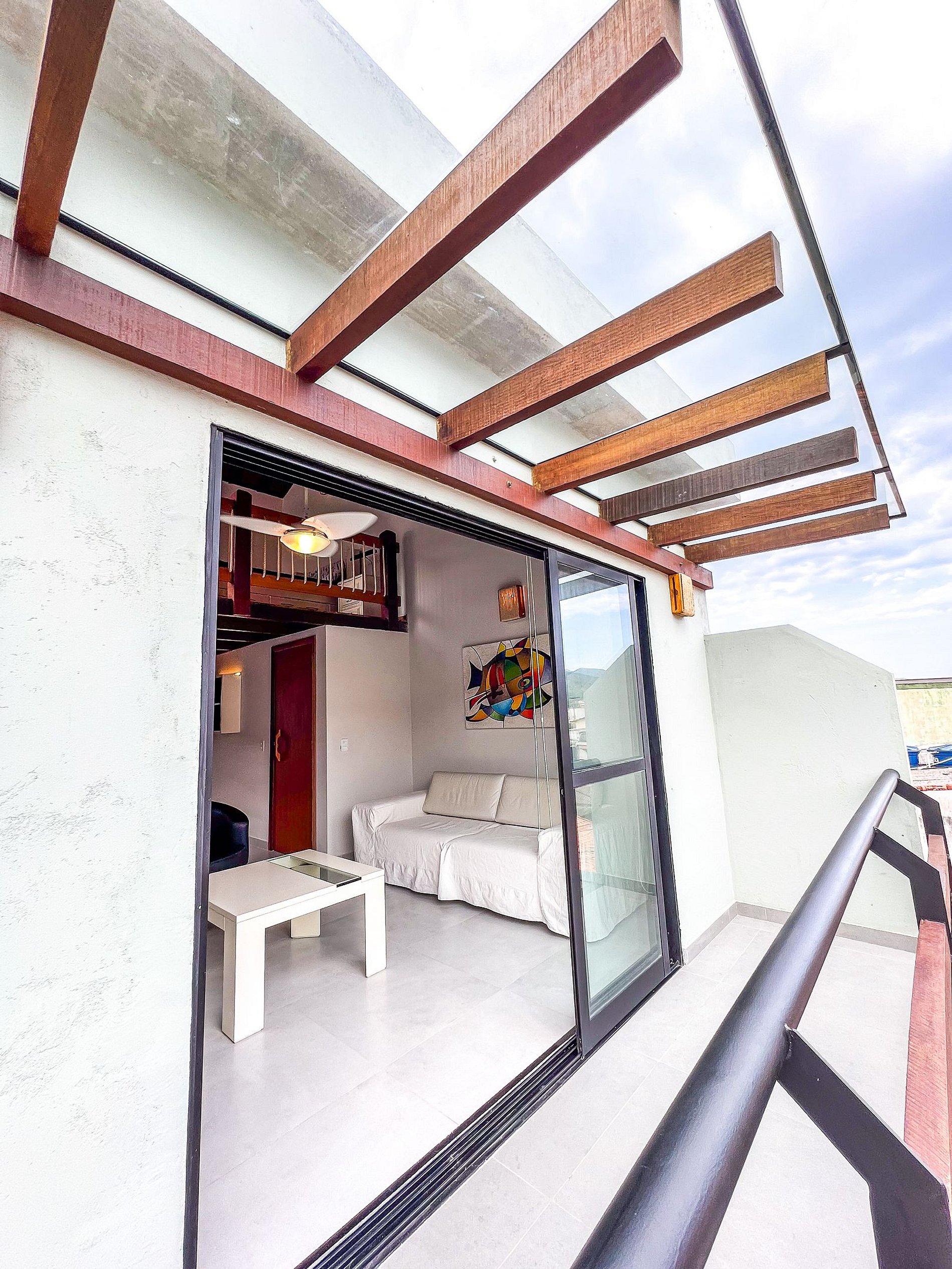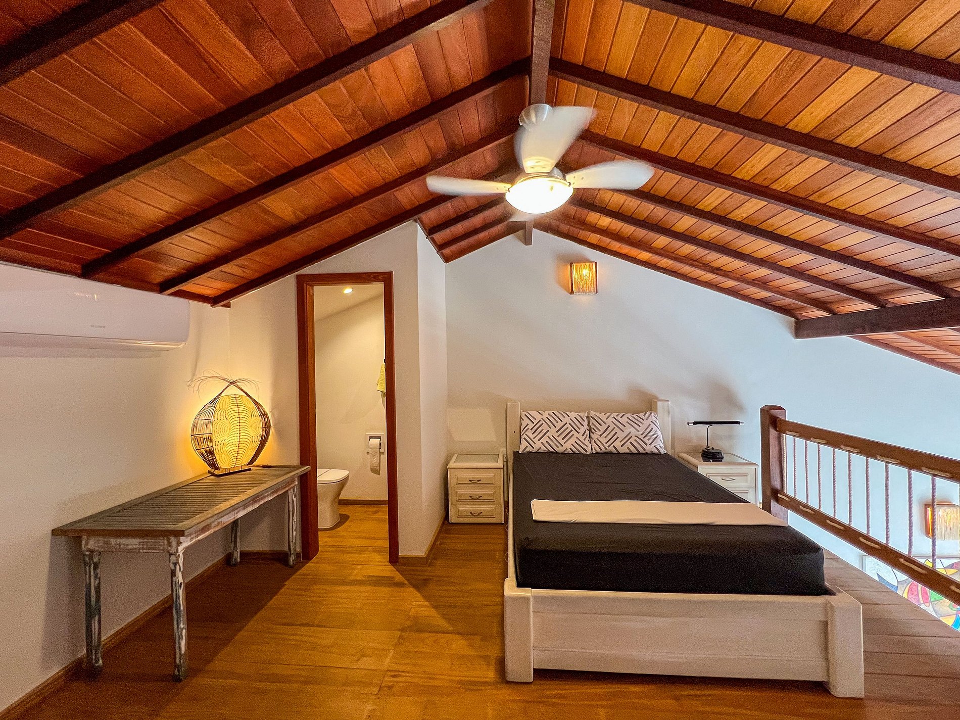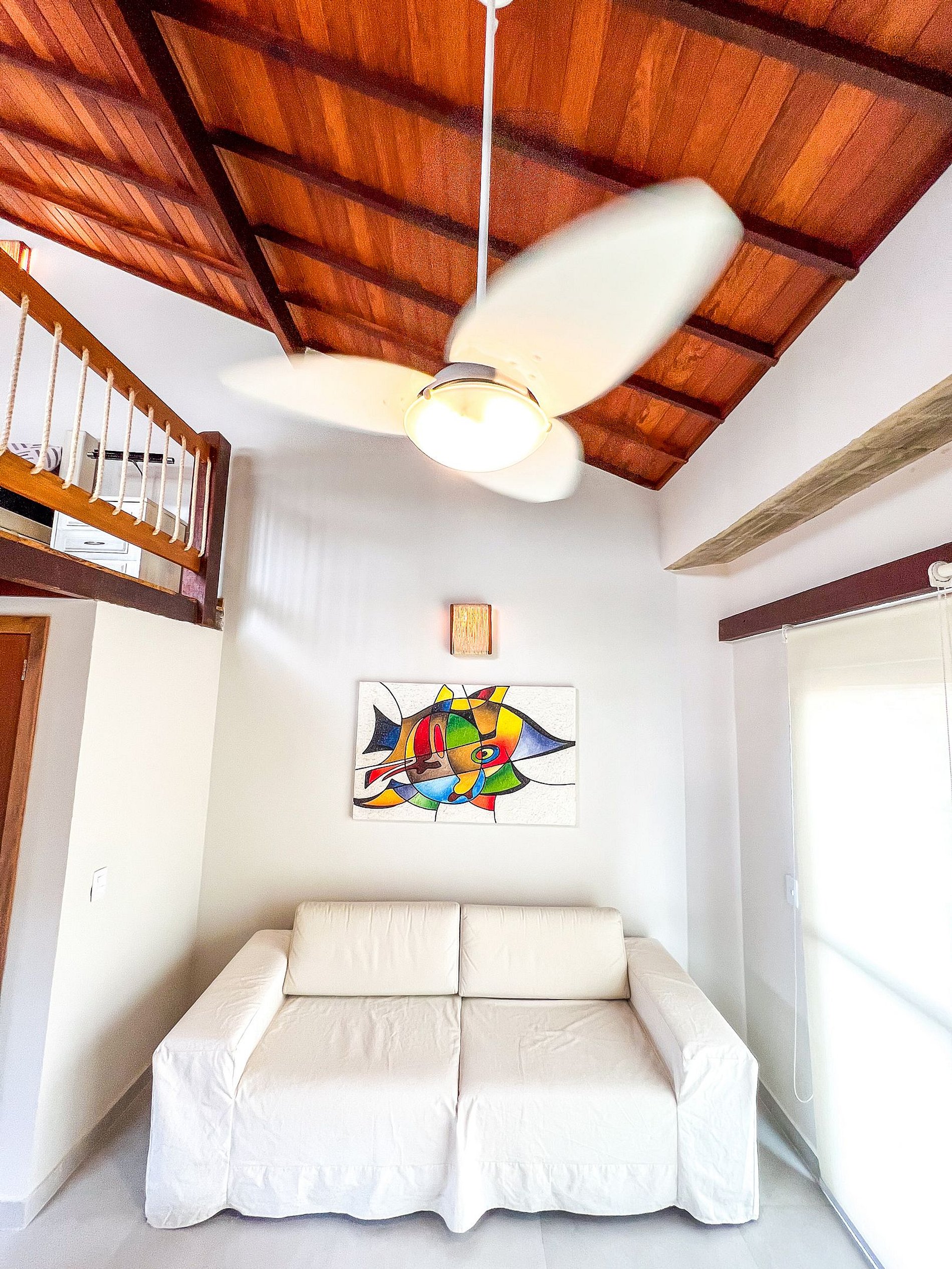 Flat amplo, o maior da villa, com mezanino que garante conforto e privacidade. Espaço moderno e bem distribuído, perfeito para casais ou grupos que buscam praticidade e uma estadia agradável próximo à praia.